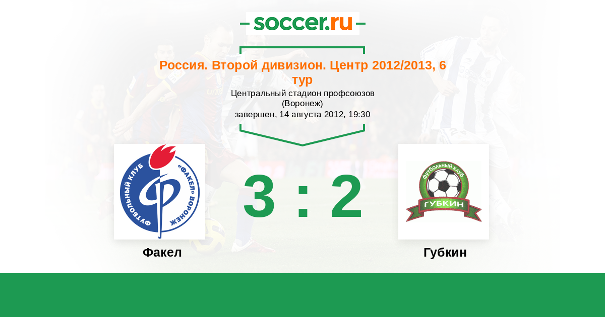 Россия. Вторая лига. Группа 3 11.08.2010 Факел Логотип футбольный клуб Факел (Воронеж) 2:2 Логотип футбольный клуб Губкин Губкин