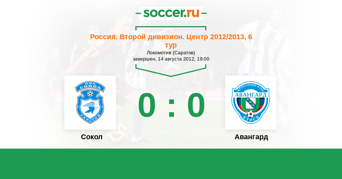 Россия. Вторая лига. Группа 3 19.09.2013 Сокол Логотип футбольный клуб Сокол (Саратов) 2:1 Логотип футбольный клуб Авангард (Курск) Авангард