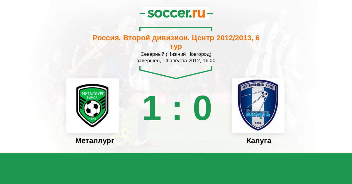 Россия. Вторая лига. Группа 3 16.08.2014 Калуга Логотип футбольный клуб Калуга 2:0 Логотип футбольный клуб Металлург (Выкса) Металлург