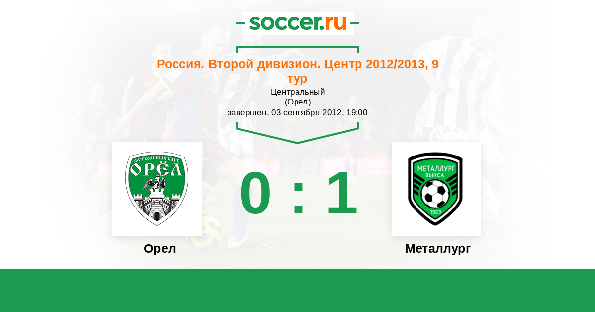 Россия. Вторая лига. Группа 3 28.08.2013 Металлург Логотип футбольный клуб Металлург (Выкса) 0:1 Логотип футбольный клуб Орел Орел