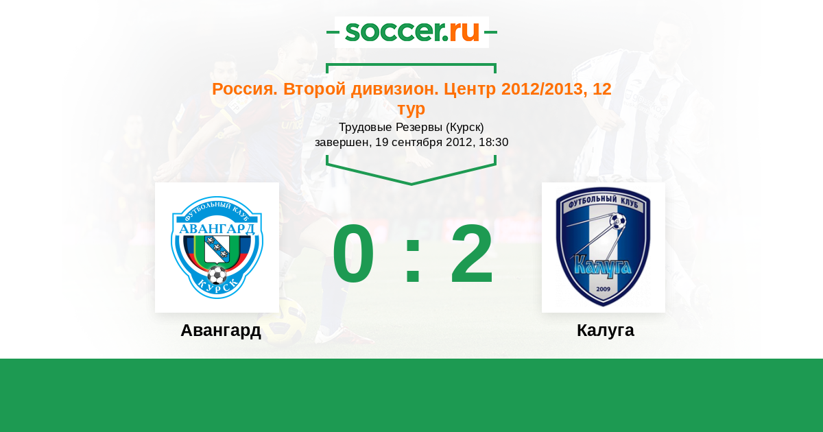 Россия. Вторая лига. Группа 3 16.05.2013 Калуга Логотип футбольный клуб Калуга 2:3 Логотип футбольный клуб Авангард (Курск) Авангард