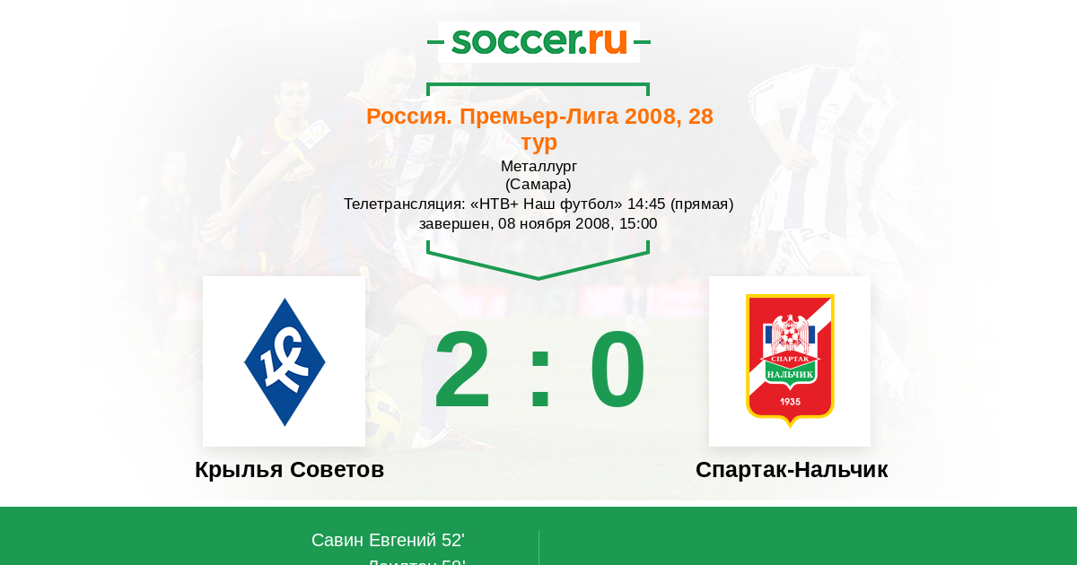 Протокол матча Крылья Советов против Спартак-Нальчик