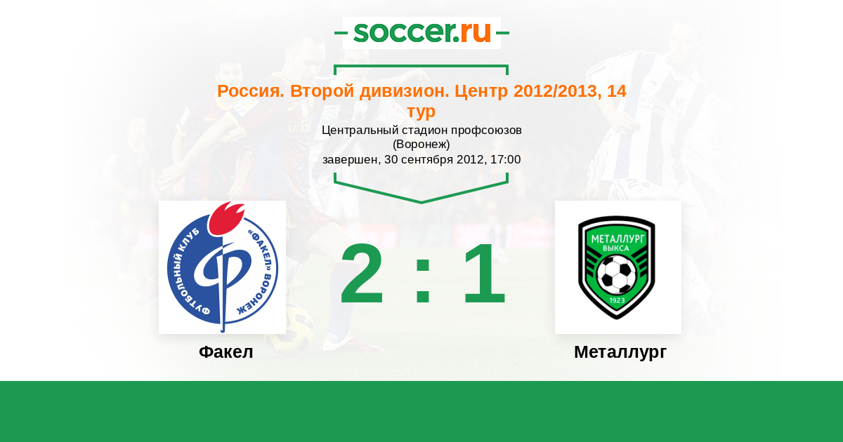 Россия. Вторая лига. Группа 3 05.10.2013 Факел Логотип футбольный клуб Факел (Воронеж) 1:1 Логотип футбольный клуб Металлург (Выкса) Металлург