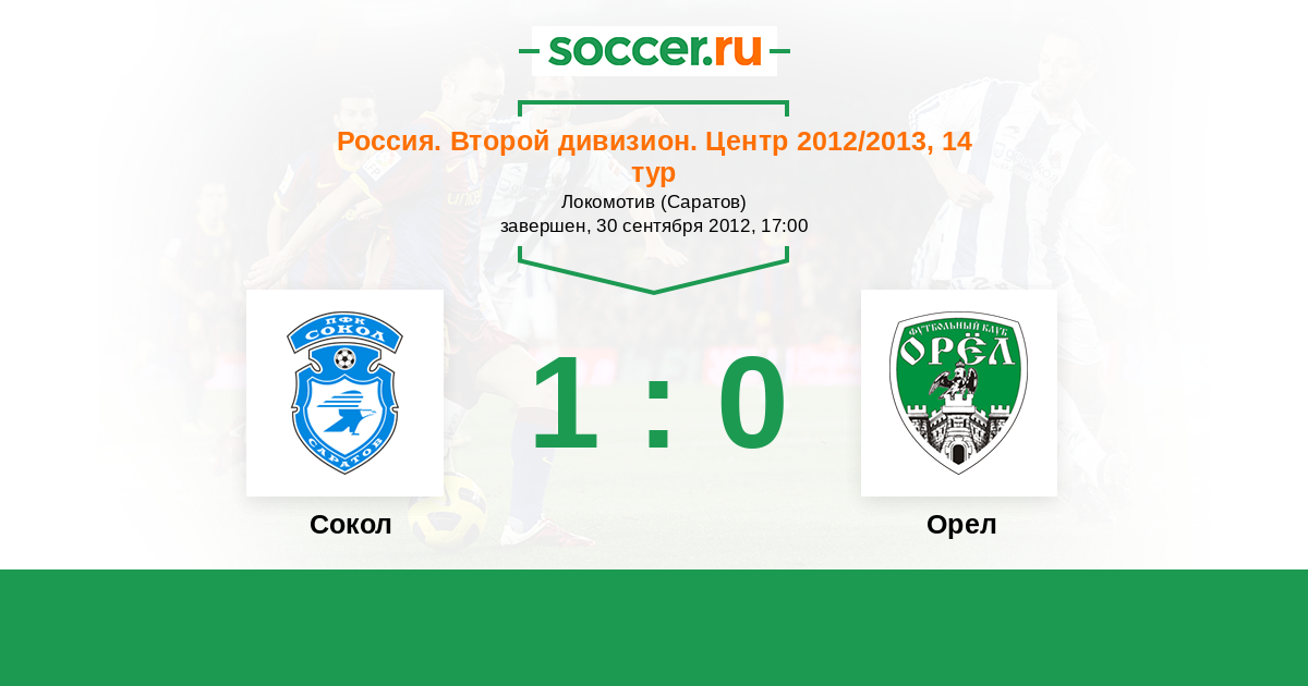Россия. Вторая лига. Группа 3 23.08.2011 Сокол Логотип футбольный клуб Сокол (Саратов) 3:1 Логотип футбольный клуб Орел Орел