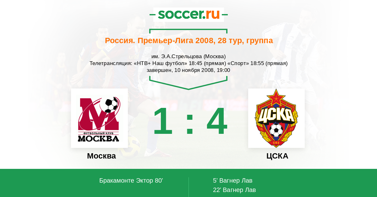 Протокол матча ФК Москва против ЦСКА