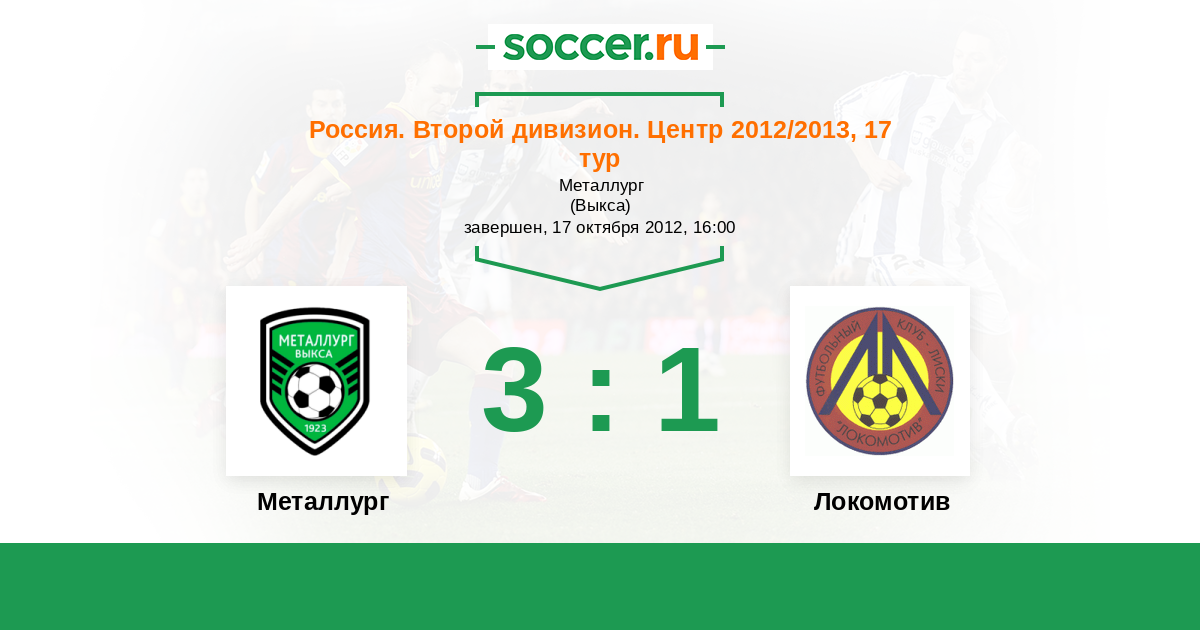 Россия. Вторая лига. Группа 3 26.07.2012 Локомотив Логотип футбольный клуб Локомотив (Лиски) 1:0 Логотип футбольный клуб Металлург (Выкса) Металлург