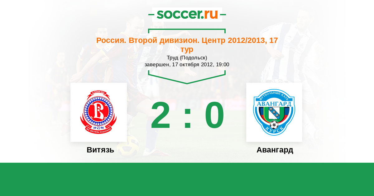 Россия. Вторая лига. Группа 3 26.07.2012 Авангард Логотип футбольный клуб Авангард (Курск) 2:2 Логотип футбольный клуб Витязь (Подольск) Витязь