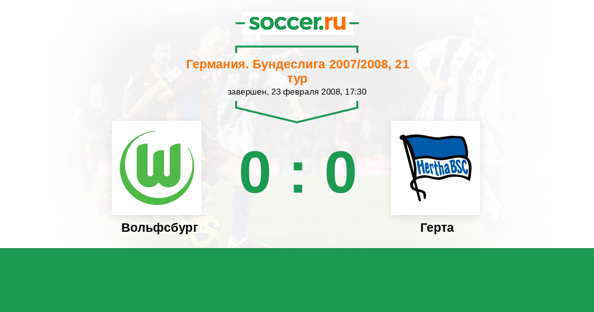 Германия. Бундеслига 13.09.2008 Герта Логотип футбольный клуб Герта (Берлин) 2:2 Логотип футбольный клуб Вольфсбург Вольфсбург