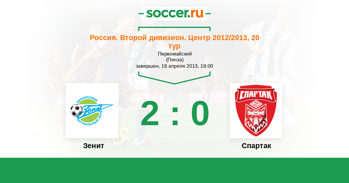 Россия. Вторая лига. Группа 3 14.08.2012 Спартак Логотип футбольный клуб Спартак (Тамбов) 2:1 Логотип футбольный клуб Зенит (Пенза) Зенит