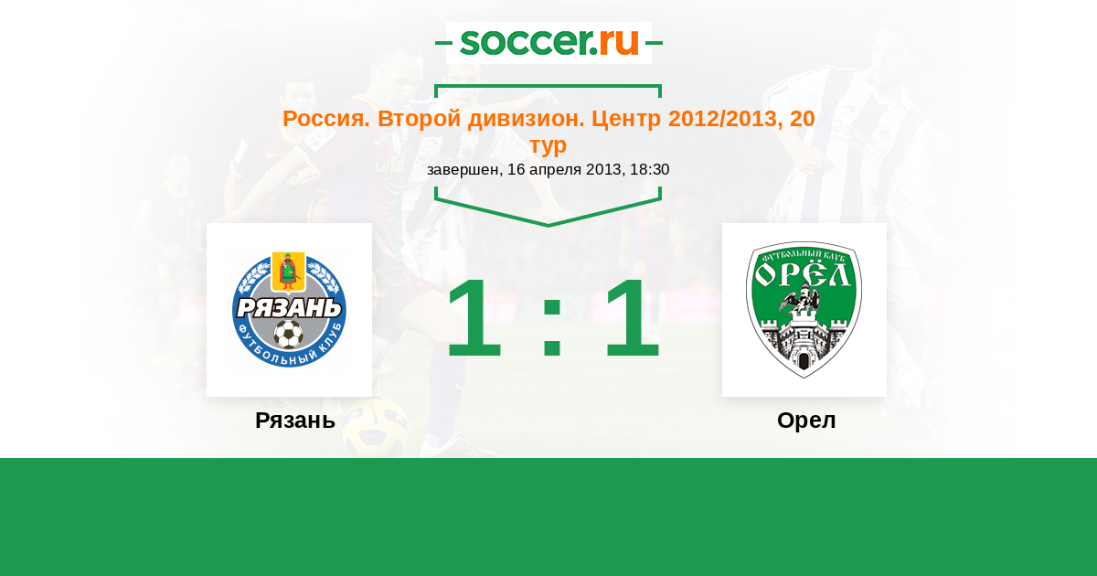 Россия. Вторая лига. Группа 3 26.04.2017 Рязань Логотип футбольный клуб Рязань 3:0 Логотип футбольный клуб Орел Орел