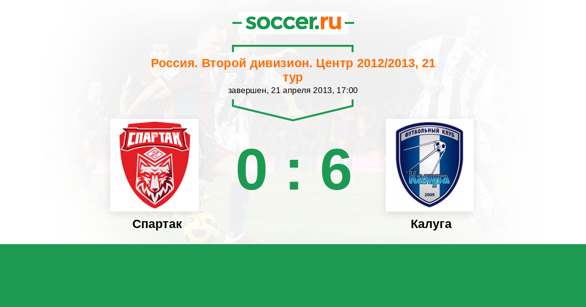 Россия. Вторая лига. Группа 3 22.08.2012 Калуга Логотип футбольный клуб Калуга 2:0 Логотип футбольный клуб Спартак (Тамбов) Спартак