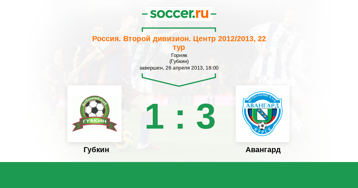 Россия. Вторая лига. Группа 3 26.04.2013 Губкин Логотип футбольный клуб Губкин 1:3 Логотип футбольный клуб Авангард (Курск) Авангард