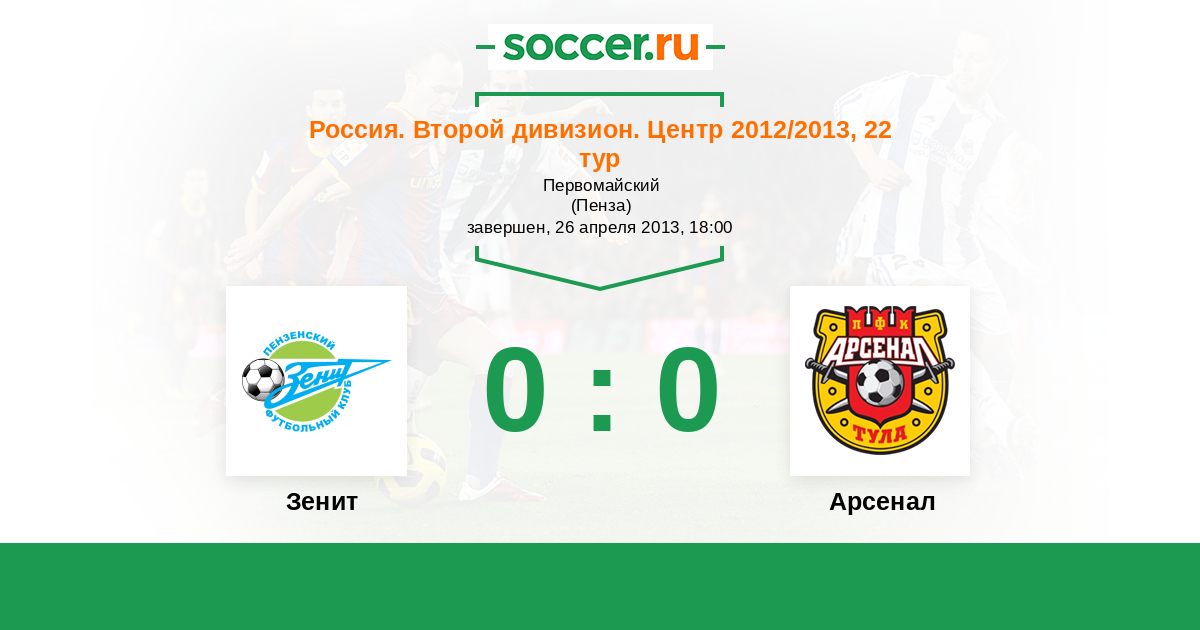 Россия. Вторая лига. Группа 3 27.08.2012 Арсенал Логотип футбольный клуб Арсенал (Тула) 3:2 Логотип футбольный клуб Зенит (Пенза) Зенит