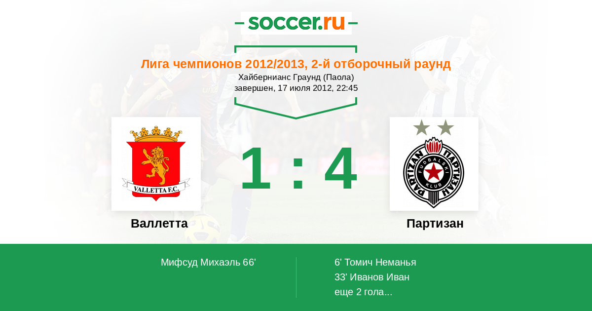 Протокол матча Валлетта против Партизан