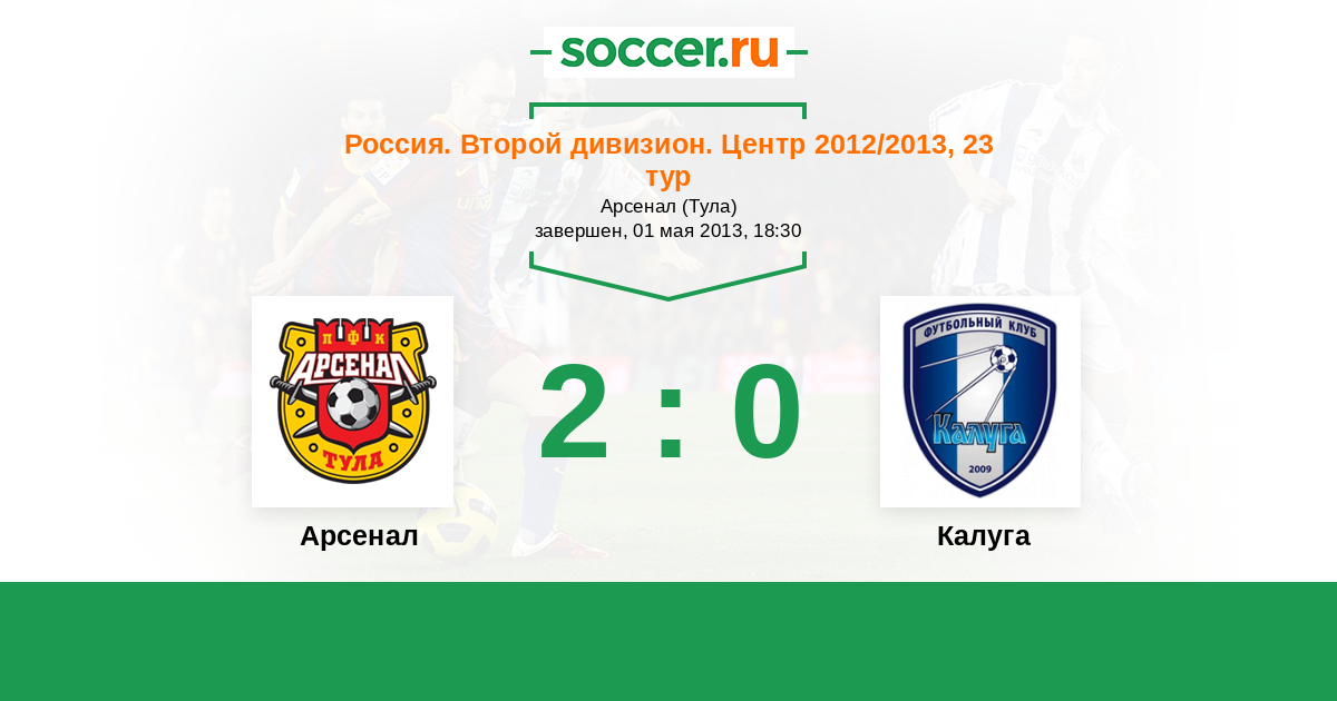 Россия. Вторая лига. Группа 3 05.09.2012 Калуга Логотип футбольный клуб Калуга 0:1 Логотип футбольный клуб Арсенал (Тула) Арсенал
