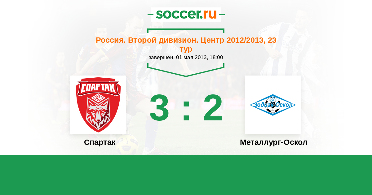 Россия. Вторая лига. Группа 3 11.05.2012 Спартак Логотип футбольный клуб Спартак (Тамбов) 2:0 Логотип футбольный клуб Металлург-Оскол (Старый Оскол) Металлург-Оскол