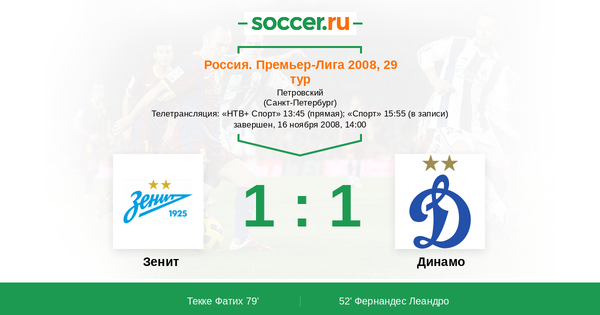 Протокол матча Зенит против Динамо