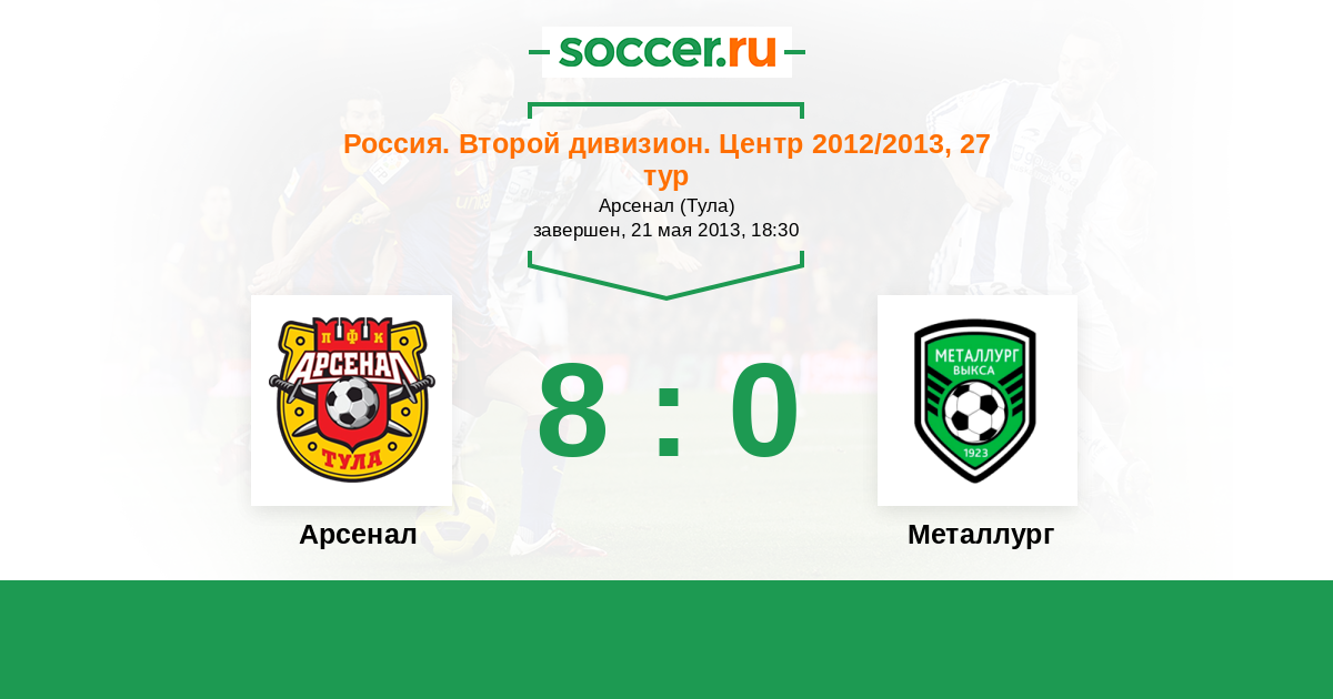 Россия. Вторая лига. Группа 3 25.09.2012 Металлург Логотип футбольный клуб Металлург (Выкса) 0:3 Логотип футбольный клуб Арсенал (Тула) Арсенал