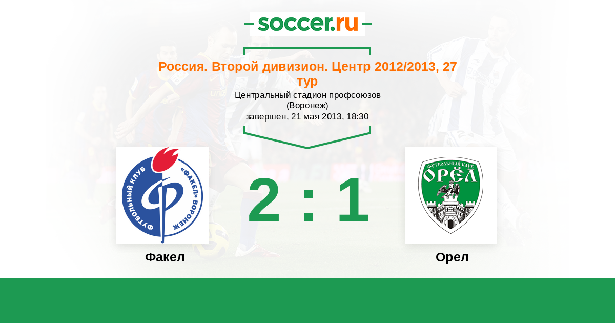 Россия. Вторая лига. Группа 3 28.10.2013 Факел Логотип футбольный клуб Факел (Воронеж) 1:1 Логотип футбольный клуб Орел Орел