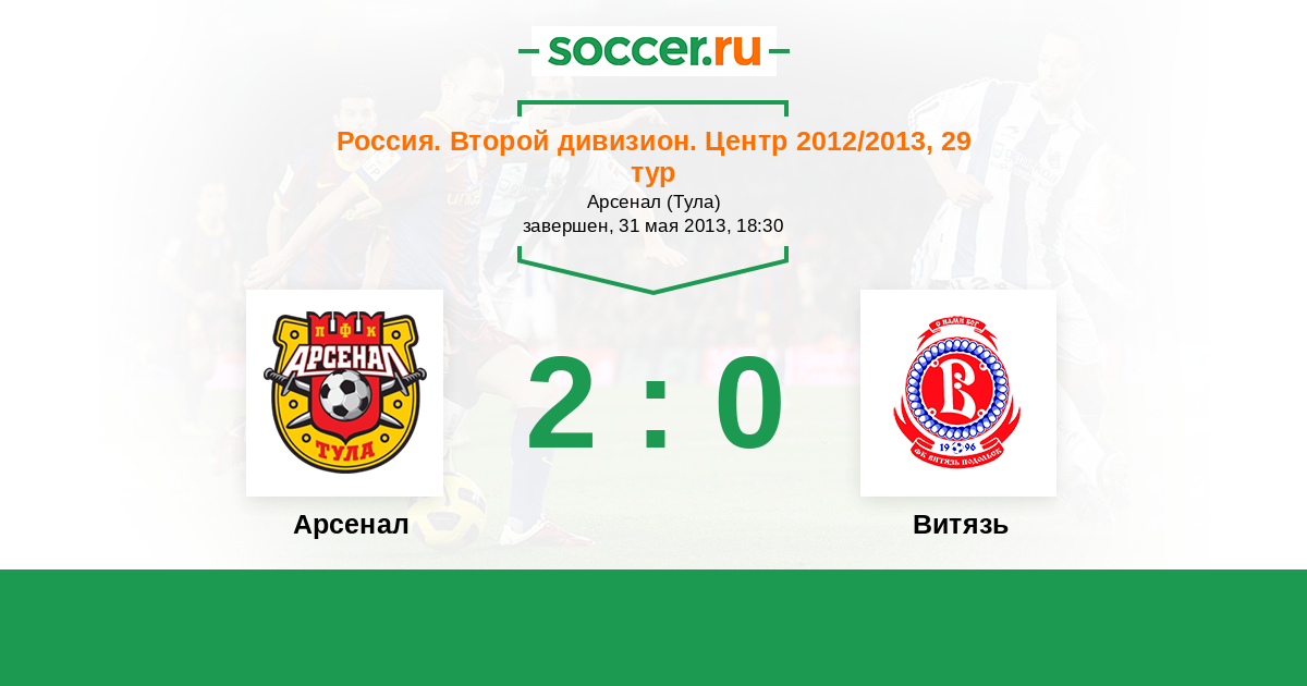 Россия. Вторая лига. Группа 3 06.10.2012 Витязь Логотип футбольный клуб Витязь (Подольск) 0:1 Логотип футбольный клуб Арсенал (Тула) Арсенал