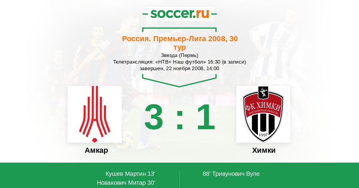 Протокол матча Амкар против Химки