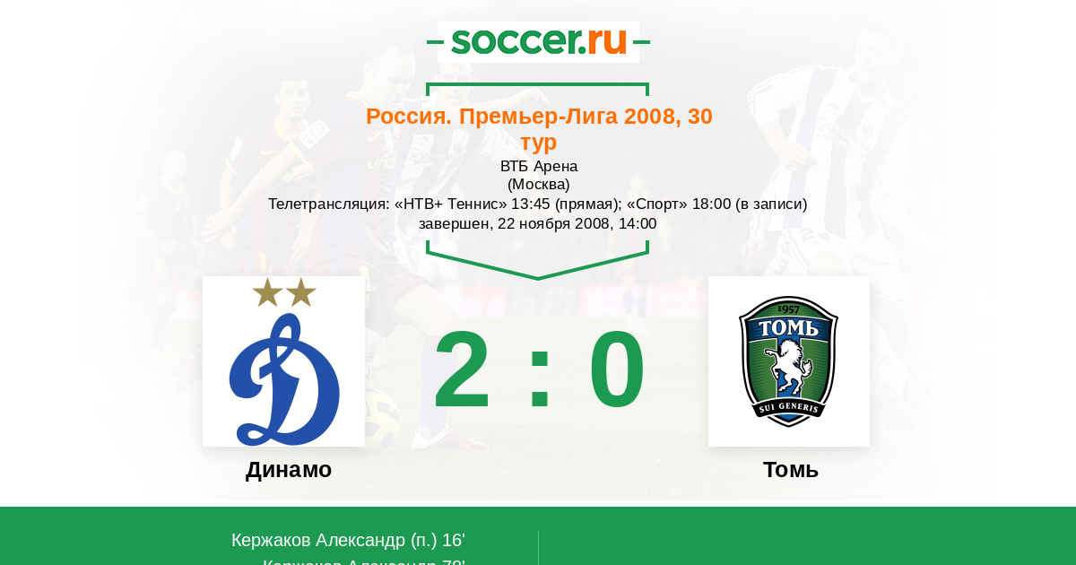 Протокол матча Динамо против Томь