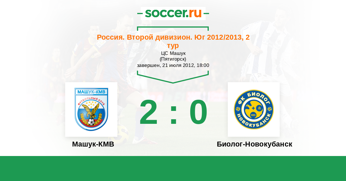 Россия. Вторая лига. Группа 1 21.10.2012 Биолог-Новокубанск Логотип футбольный клуб Биолог-Новокубанск 1:1 Логотип футбольный клуб Машук-КМВ (Пятигорск) Машук-КМВ