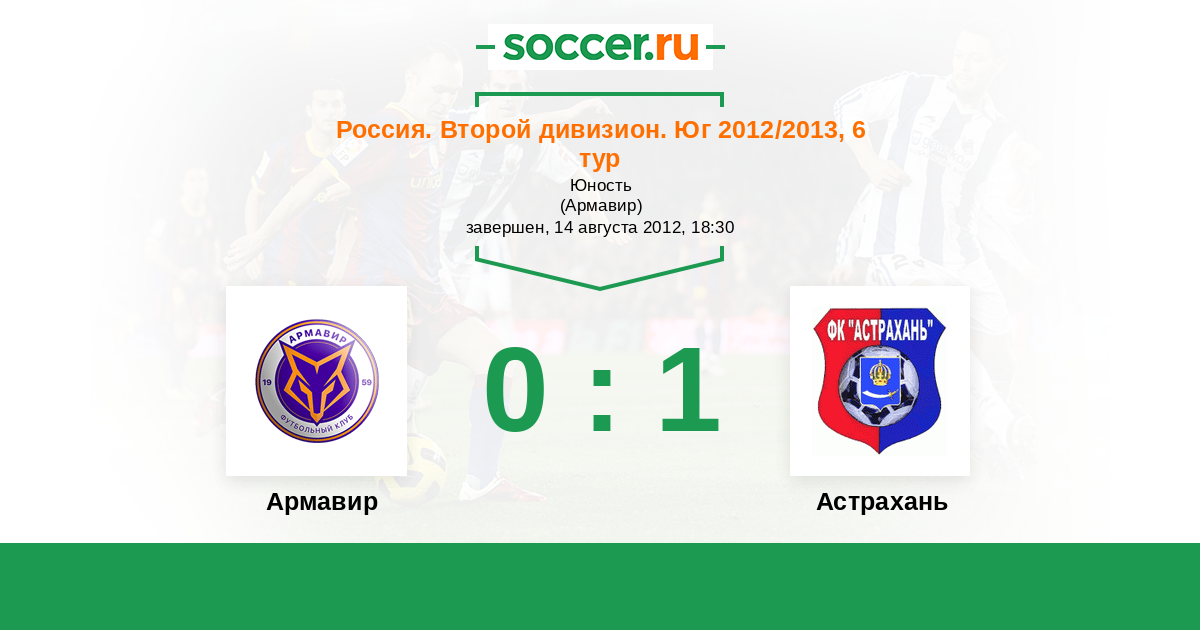 Россия. Вторая лига. Группа 1 07.05.2012 Астрахань Логотип футбольный клуб Астрахань 0:1 Логотип футбольный клуб Торпедо Армавир Торпедо Армавир