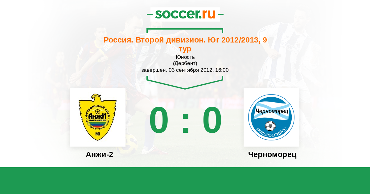 Россия. Вторая лига. Группа 1 19.07.2017 Анжи-2 Логотип футбольный клуб Анжи-2 (Махачкала) 1:1 Логотип футбольный клуб Черноморец (Новороссийск) Черноморец