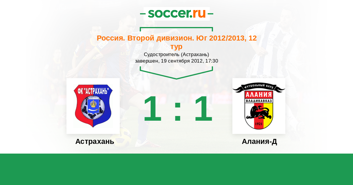 Россия. Вторая лига. Группа 1 10.10.2013 Алания-Д Логотип футбольный клуб Алания-Д (Владикавказ) 1:1 Логотип футбольный клуб Астрахань Астрахань
