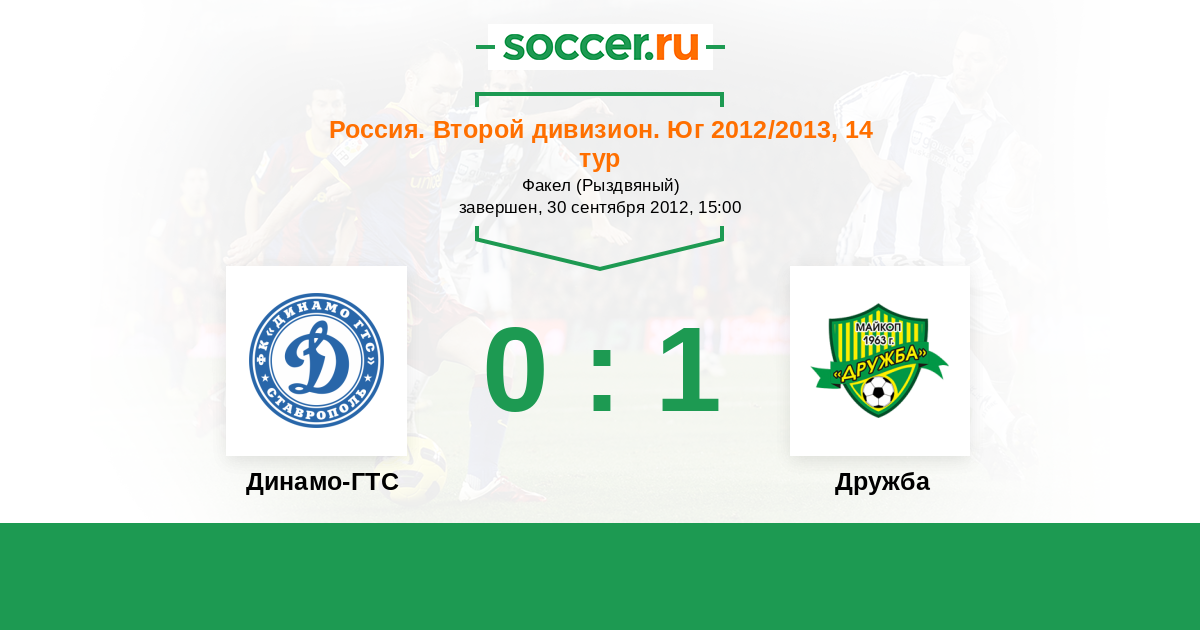 Россия. Вторая лига. Группа 1 05.10.2013 Газпром-Трансгаз-Ставрополь Логотип футбольный клуб Газпром-Трансгаз-Ставрополь 2:0 Логотип футбольный клуб Дружба (Майкоп) Дружба