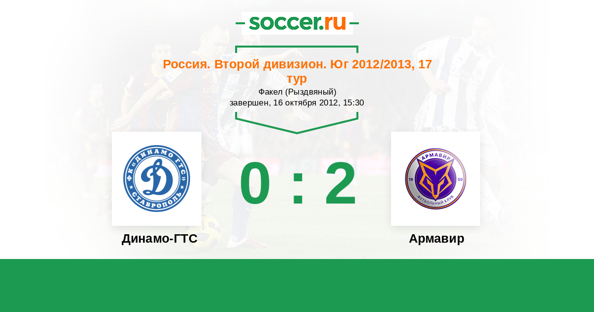 Россия. Вторая лига. Группа 1 10.10.2013 Торпедо Армавир Логотип футбольный клуб Торпедо Армавир 2:0 Логотип футбольный клуб Газпром-Трансгаз-Ставрополь Газпром-Трансгаз-Ставрополь