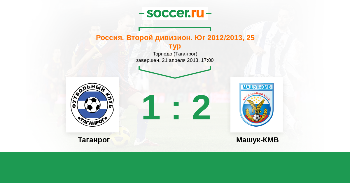 Россия. Вторая лига. Группа 1 03.09.2012 Машук-КМВ Логотип футбольный клуб Машук-КМВ (Пятигорск) 0:1 Логотип футбольный клуб Таганрог Таганрог