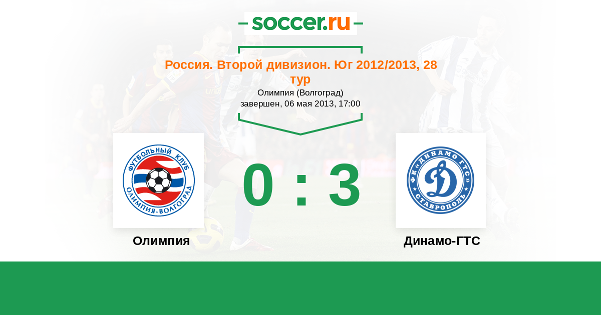 Россия. Вторая лига. Группа 1 29.09.2013 Олимпия Логотип футбольный клуб Олимпия (Волгоград) 2:0 Логотип футбольный клуб Газпром-Трансгаз-Ставрополь Газпром-Трансгаз-Ставрополь