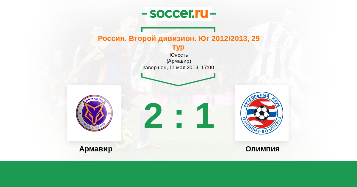 Россия. Вторая лига. Группа 1 03.10.2012 Олимпия Логотип футбольный клуб Олимпия (Волгоград) 0:1 Логотип футбольный клуб Торпедо Армавир Торпедо Армавир