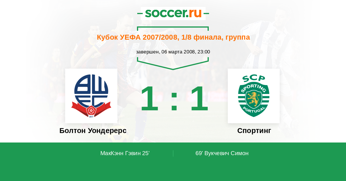 Протокол матча Болтон Уондерерс против Спортинг