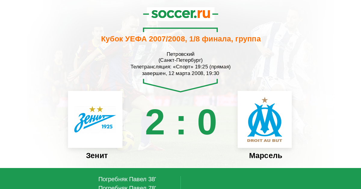 Протокол матча Зенит против Марсель
