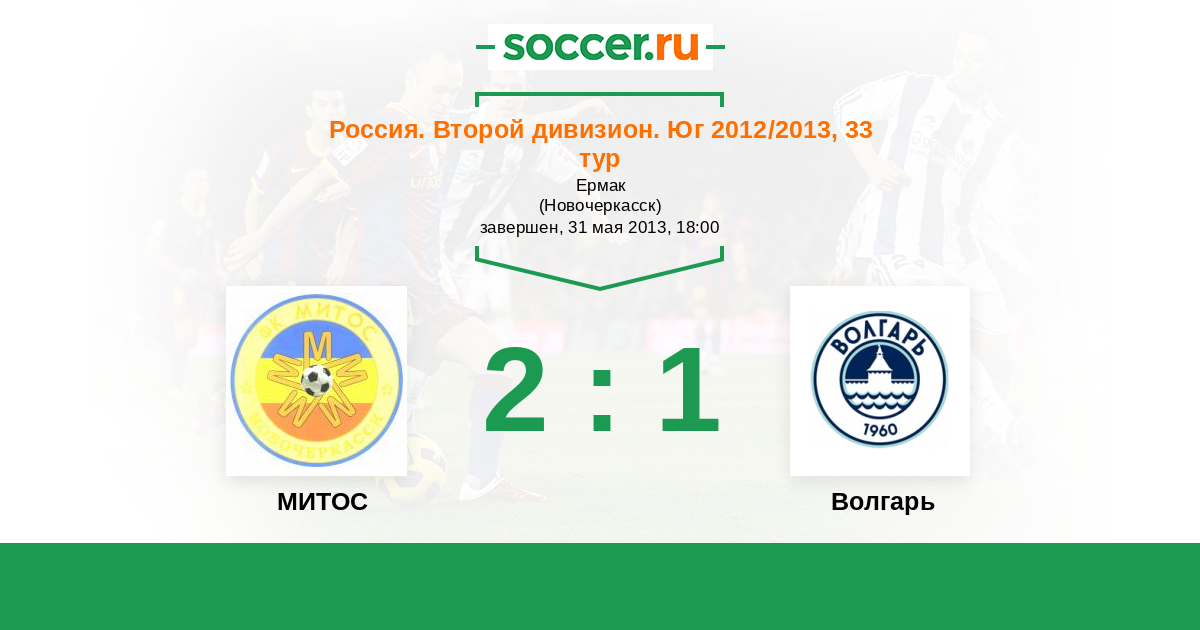 Россия. Вторая лига. Группа 1 19.05.2014 МИТОС Логотип футбольный клуб МИТОС (Новочеркасск) 1:3 Логотип футбольный клуб Волгарь (Астрахань) Волгарь