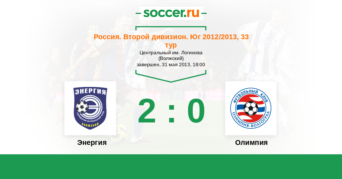 Россия. Вторая лига. Группа 1 10.04.2014 Олимпия Логотип футбольный клуб Олимпия (Волгоград) 2:1 Логотип футбольный клуб Энергия (Волжский) Энергия