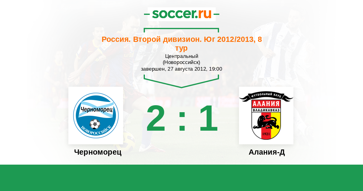 Россия. Вторая лига. Группа 1 22.08.2013 Алания-Д Логотип футбольный клуб Алания-Д (Владикавказ) 2:4 Логотип футбольный клуб Черноморец (Новороссийск) Черноморец
