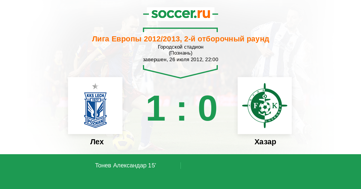 Протокол матча Лех против Хазар