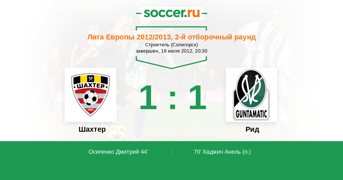 Протокол матча Шахтер против Рид