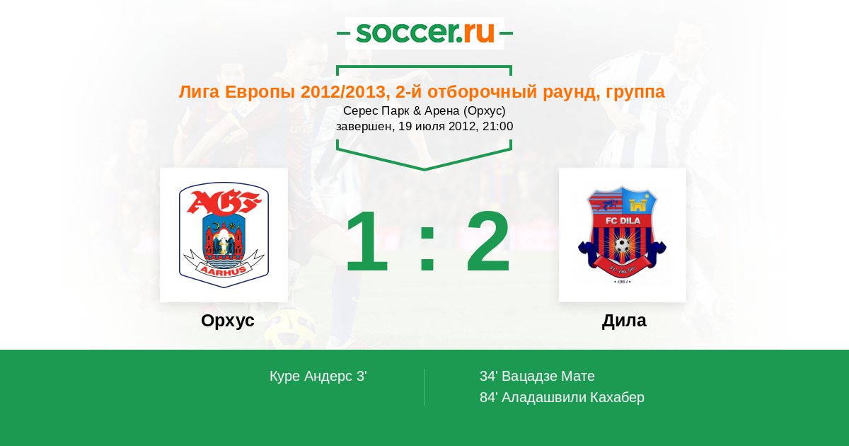 Протокол матча Орхус против Дила