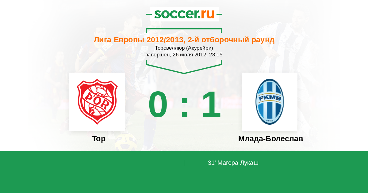 Протокол матча Тор против Млада-Болеслав