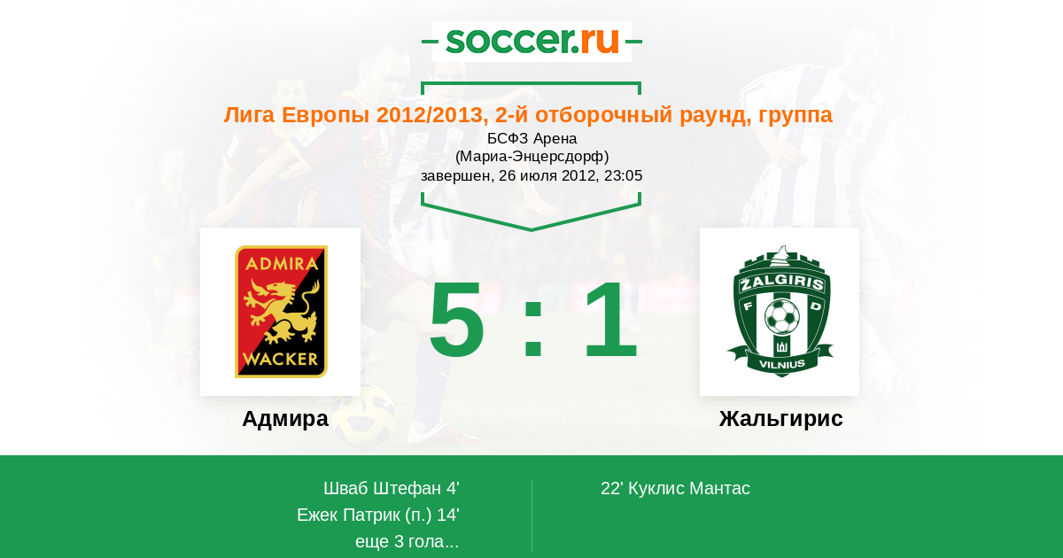 Протокол матча Адмира против Жальгирис