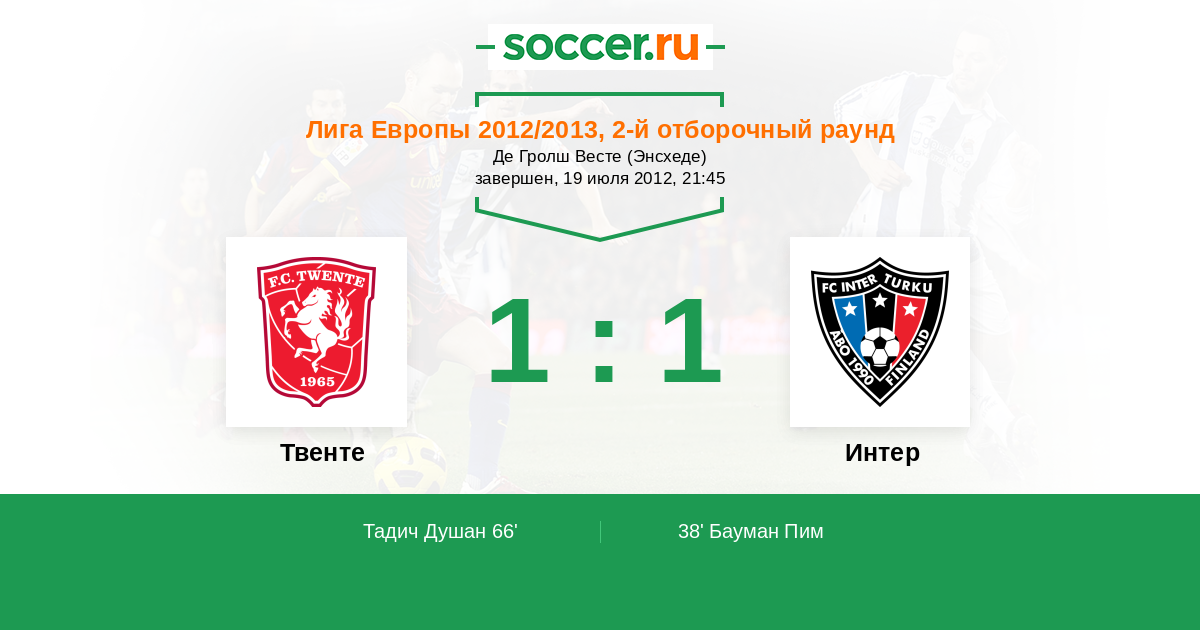 Протокол матча Твенте против Интер