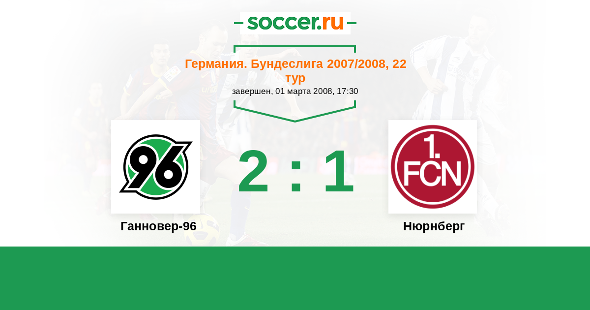 Германия. Кубок 27.02.2007 Нюрнберг Логотип футбольный клуб Нюрнберг 0:0 Логотип футбольный клуб Ганновер-96 Ганновер-96
