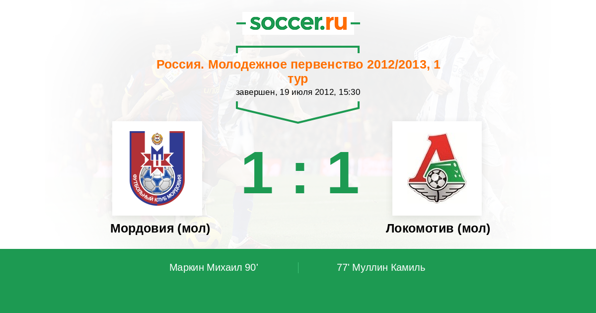 Протокол матча Мордовия (мол) против Локомотив (мол)