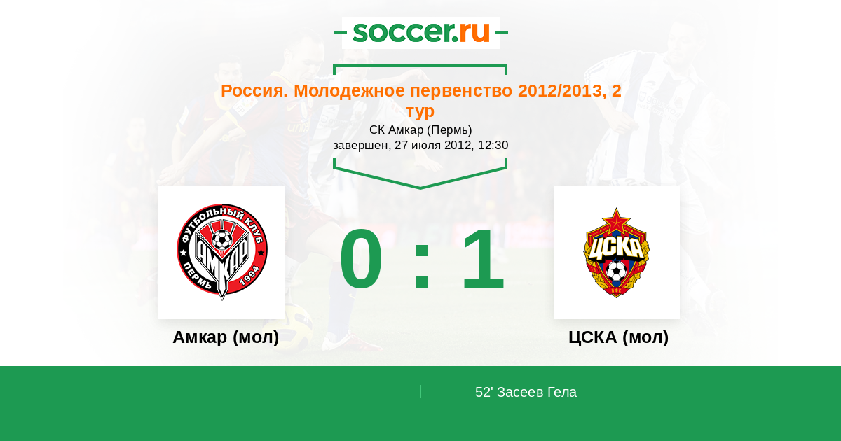 Протокол матча Амкар (мол) против ЦСКА (мол)