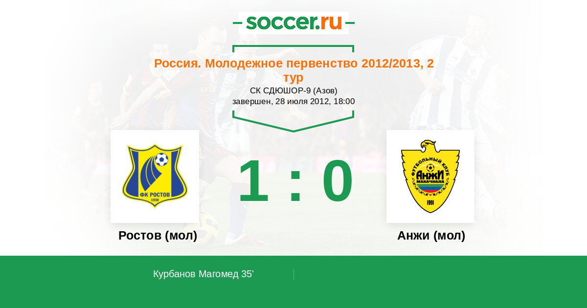 Протокол матча Ростов (мол) против Анжи (мол)